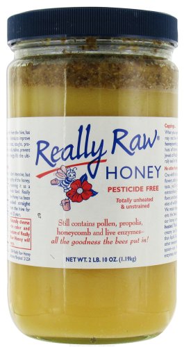 Really Raw Honey - Pesticide-Free Honey (1.19kg) - 2.63 lbs.Really Raw Honey is a totally unprocessed whole food, that is never heated or strained, and contains all the pollen, propolis, vitamins, enzymes and trace minerals the bee's put into it. Creamy, smooth and spreadable, Really Raw Honey is more solid than liquid and each jar is capped with crunchy bits of honeycomb, pollen and propolis. Really Raw Honey is certified pesticide-free by an independent lab; the taste is utterly extraordinary! We use goldenrod and aster nectar and our cold packing process to produce our creamy, crystalline texture and rich, full-bodied flavor. This fall the Aster plant bloomed in abundance, and the bees foraged enthusiastically. Aster causes the honey to crystallize firm and smooth. If you would like to soften your honey, place the jar in warm water or leave in a warm room - this will not cause any loss of enzymes or other healthful properties in the honey!When you open the jar, you'll see the honey "cappings". Crunchy bits of honeycomb, pollen and propolis in hues of brown, gold and amber. These nutrient-rich Crown Jewels of Really Raw Honey can be chewed just like gum.Try It and Believe It!For skin rashes, burns and abrasions. Apply a small amount of Really Raw Honey lightly over the affected area; may cover with a dressing or a dusting of cornstarch to reduce any stickiness.The ultimate moisturizer.Smooth a small amount of Really Raw Honey lightly over the skin; easily remove later with splashes of cold water or comfortable warm water. Leaves skin baby soft.As a bath and antibacterial soap.Wash with Really Raw Honey straight from the jar and enjoy sparkling clean skin. Facial blemishes and acne caused by cosmetics or allergies will clear up quickly using a nightly treatment of RRH. A small amount needed.For hair and scalp treatment.